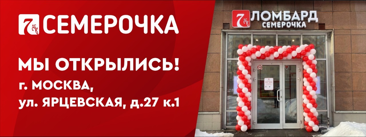 Ломбард Семерочка открылся по адресу: г. Москва, ул. Ярцевская д.27к1, 2 минуты от м. Молодежная (выход №1)
